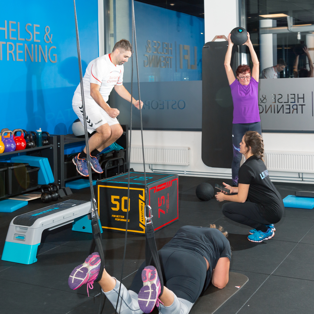 Hos LFI Helse&Trening er gruppene små og varierer mellom maks 6 til maks 10 personer per gruppe avhengig av typen treningsgruppe. Dette er fordi vi ønsker å ha en tett oppfølgning med våre deltagere slik at vi sikrer at alle blir sett, øvelsene blir tilpasset og intensiteten og nivået styres etter hva den enkelte deltager anbefales. Dette er en stor fordel, forteller mange, når de sammenligner med større grupper på andre komersielle treningssentre. I gruppetreningene ønsker vi altså å holde et høyt faglig nivå, tilby god kvalitet og være et møtested som er tilpasset den enkelte slik at alle skal føle seg velkomne.