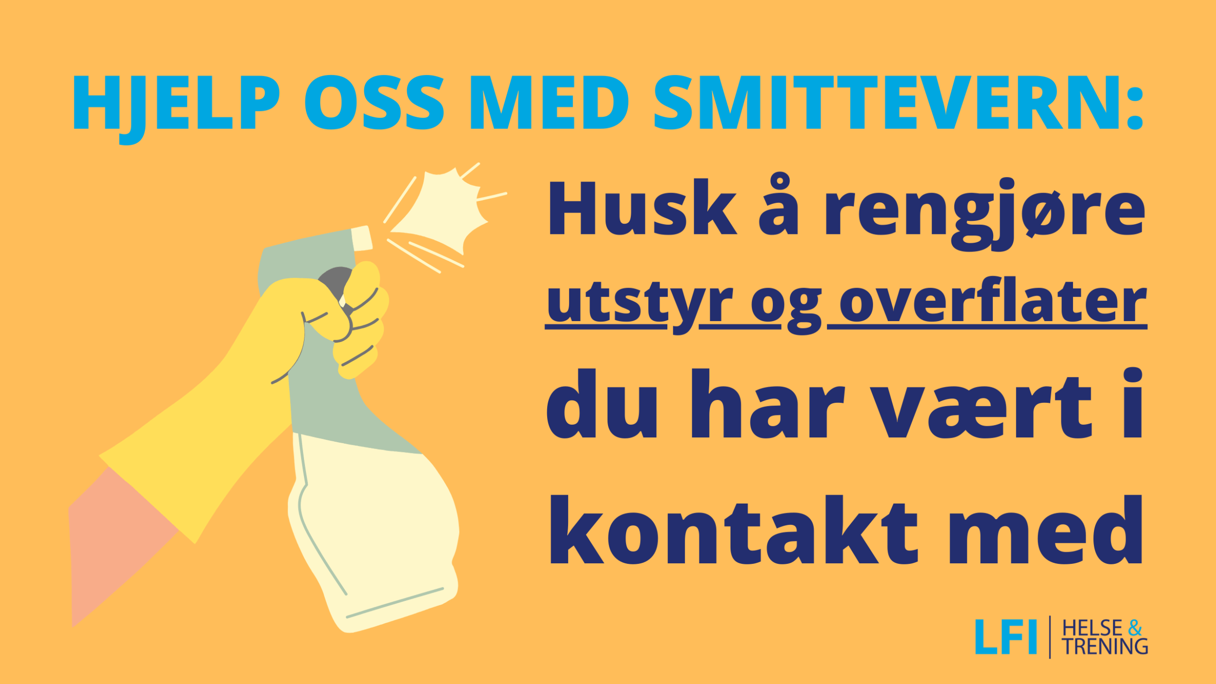 Det aller viktigste våpenet vi har i kampen mot pandemien er grundig og regelmessig renhold. LFI-ansatte vil hyppig rengjøre alle overflater som brukes ofte, og en fullstendig rengjøring av alt utstyr vil bli gjennomført daglig. Det vil også til en hver tid følges bestemte grenser for hvor mange som kan være på senteret samtidig for å forsikre kontroll og at alle regler opprettholdes.