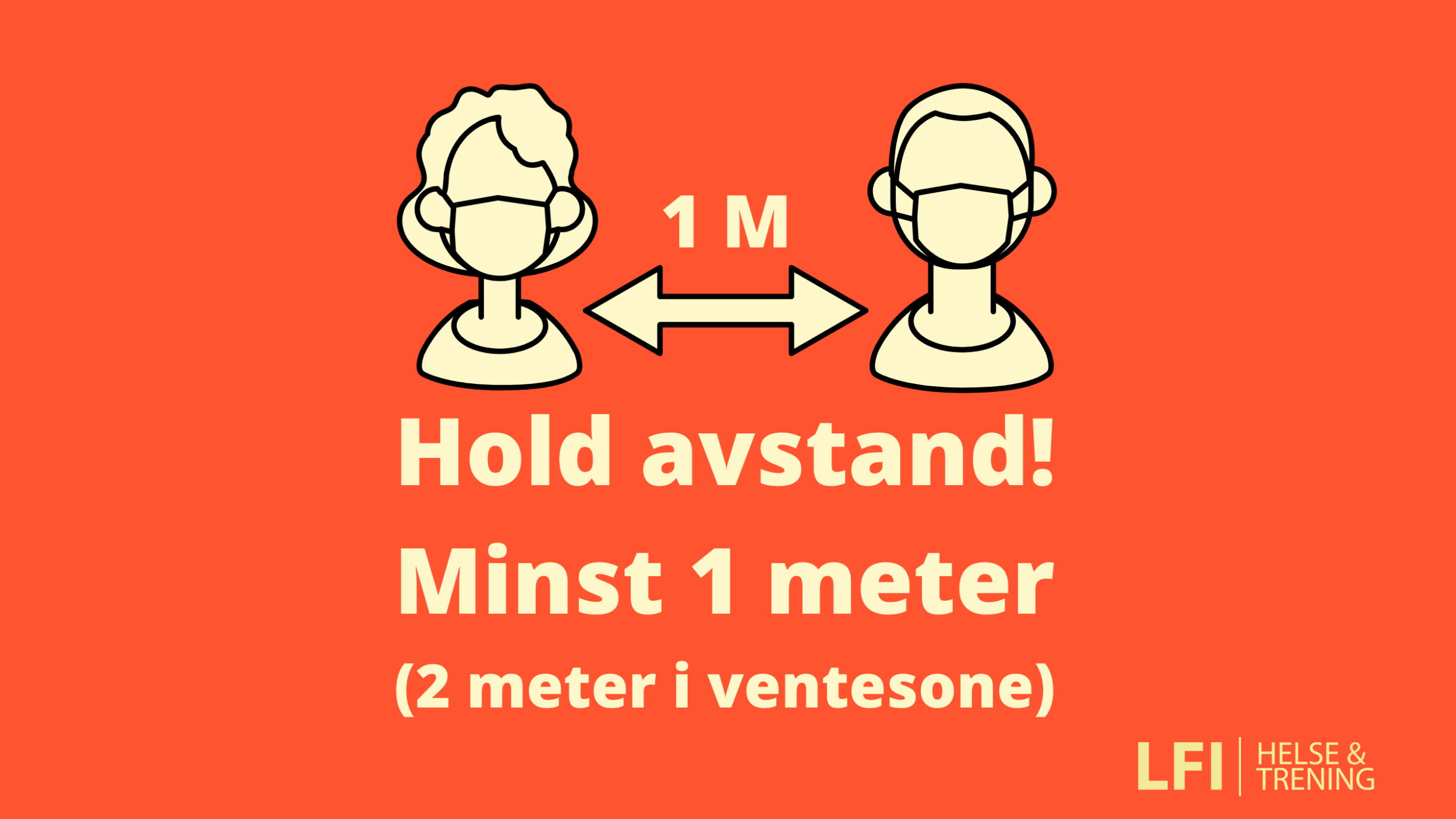 Etter direkte renhold er, avstand det beste man kan gjøre for å verne seg selv og andre for smitte. Alle ønsker å føle seg trygge på trening og det er derfor ekstra viktig at vi viser respekt ved å holde avstand til hverandre.